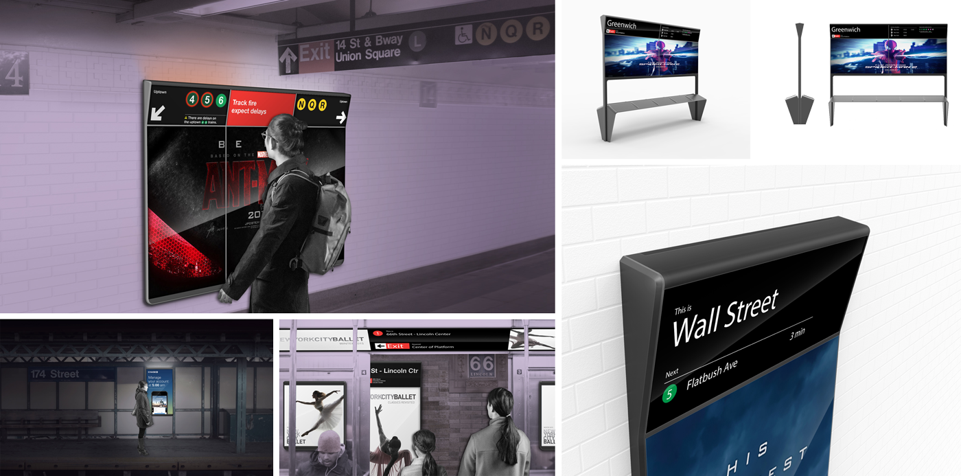 A creative vision for the physical and digital applications of this new transit media: focusing on the passenger experience, illustrating how to meet advertiser goals, and showing how a connected solution delivers enhanced media capabilities that drive new value for the MTA and Outfront.